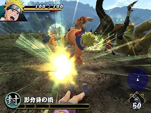 Après de longs mois d'attente et de patience, Bandai s'est enfin décidé à dévoiler les premières images officielles de Naruto Uzumaki Ninden, le prochain Naruto sur PS2. Ici, point de baston classique ni de cel-shading, il s'agira en fait d'un jeu d'action teinté de phases d'exploration en 3D classique. Pour l'instant, il semblerait que Naruto soit le seul personnage jouable du titre et notre ninja de Konoha n'hésitera pas à utiliser ses techniques de shinobi (Kage Bushin no Jutsu, Rasengan) pour venir à bout des hommes d'Orochimaru. L'histoire ne nous dit pas non plus si le scénario s'étend jusqu'aux épisodes mettant en scène l'Akatsuki Team. Plus d'informations dans les mois à venir donc.