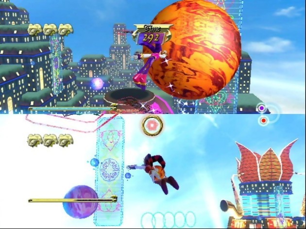 En prenant son envol après le passage de Super Mario Galaxy, le virevoltant bouffon violet de Sega propose une sorte de prolongement à ces délires aéro-vidéoludiques.