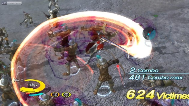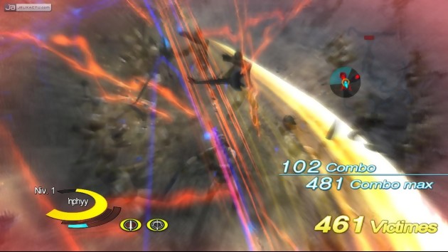 L’idée de base de ce titre est la même que les produits de Koei, à savoir exprimer sa colère à travers des combats homériques où il est possible d’abattre 50 soldats d’un simple revers d’épée. C’est un peu le minimum syndical imposé par une console nouvelle génération. Et après avoir vu la Xbox 360 en œuvre avec Kameo et ses hordes de gobelins, on savait éperdument que la machine en avait dans le ventre. Ninety-Nine Nights pousse le vice encore plus loin et il est impossible de vouloir compter le nombre d’ennemis à l’écran compte-tenu de la densité de la foule. Il arrive parfois qu’on perde notre héros de vue dans cette affluence massive. Dans ce cas, la RATP nous conseille de ne pas utiliser les strapontins. Nous, nous préférons vous recommander de ne pas arrêter de tapoter sur les boutons X et Y du pad de la Xbox 360. Frappes légères ou attaques lourdes, il est possible de varier les combinaisons de touche pour créer un semblant de combos dans ce conglomérat de n’importe quoi. Que l’on se rassure, les développeurs de Phantagram ne sont pas des newbies et avec la série des Kingdom Under Fire, ils nous ont prouvé par deux fois qu’ils savent programmer un jeu. La preuve, avec ces centaines de personnages à l’écran et le nombre d’animations calculées simultanément par la console, le frame-rate ne fronce pas d’un cil. C’est d’autant plus impressionnant car Ninety-Nine Nights n’hésite pas à faire appel aux effets pyrotechniques en tout genre. Blur, traînées de lumières, explosions, le jeu est en perpétuel mouvement et la réalisation digne d’un jeu Xbox 360 de seconde génération.
