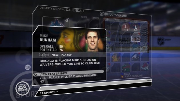 Voici une nouvelle série d'images de NHL 07 qui tourne ici dans sa version Xbox 360. Outre des moments de jeu patins sur glace, on découvre cette fois-ci quelques screenshots permettant de voir à quoi ressemblera les pages de menus dédiés aux différents statistiques pour garder un oeil pertinent sur son équipe et de ses joueurs lors d'un match ou d'un tournoi. La sortie de NHL 07 est fixée au 14 septembre 2006.