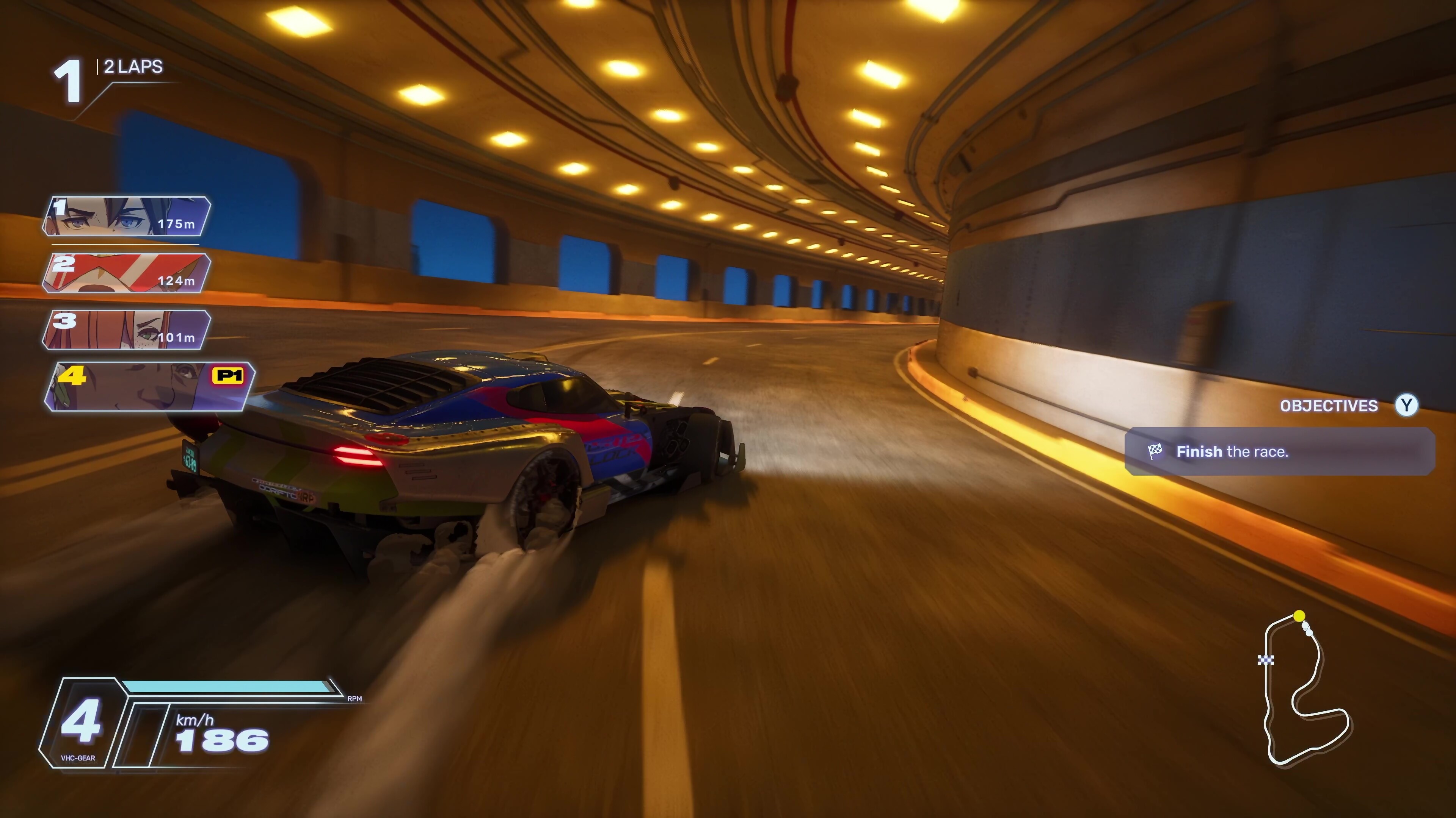 Screamer reprend ces codes esthétiques, mais avec une approche encore plus affirmée, surtout que Milestone a confié la direction artistique à Polygon Pictures, un studio d’animation japonais réputé qui a bossé pour Netflix, Disney ou bien encore Amazon. Et ce Screamer puise clairement ses inspirations dans l’animation japonaise des années 90, avec cette mégalopole qui rappelle immédiatement l’ambiance de Akira, avec ses néons omniprésents, ses immeubles vertigineux et son urbanisme tentaculaire. Le jeu propose d’ailleurs plusieurs biomes pour varier les ambiances, mais pour cette session de hands-on, on avait accès uniquement à Neo Rey, qui proposait cela dit des tracés de jour comme de nuit. L’esthétique manga/cyberpunk inspirée des animés des années 80-90 est en revanche omniprésente et si jamais vous êtes un adepte de ces univers, vous allez tout de suite accrocher, d’autant que le jeu va proposer un vrai mode Histoire, avec un scénario travaillé et une pléiade de personnages tous différents les uns que les autres. Ils ont surtout chacun leur personnalité et parlent tous dans leur langue maternelle, un peu à la manière de Tekken. C’est assez déroutant au départ et ces dialogues où l’on passe de l’anglais au français en passant par l’italien, le japonais ou l’allemand donne l’impression que le jeu buggue, mais on finit par s’y faire. Et au moins, c’est original. Dans tous les cas, on va faire connaissance avec ces protagonistes, sachant que le grand méchant, parce que oui, il y en a un, il est incarné par Troy Baker, aka monsieur Joel dans The Last of Us, pour ne citer que son rôle le plus populaire.