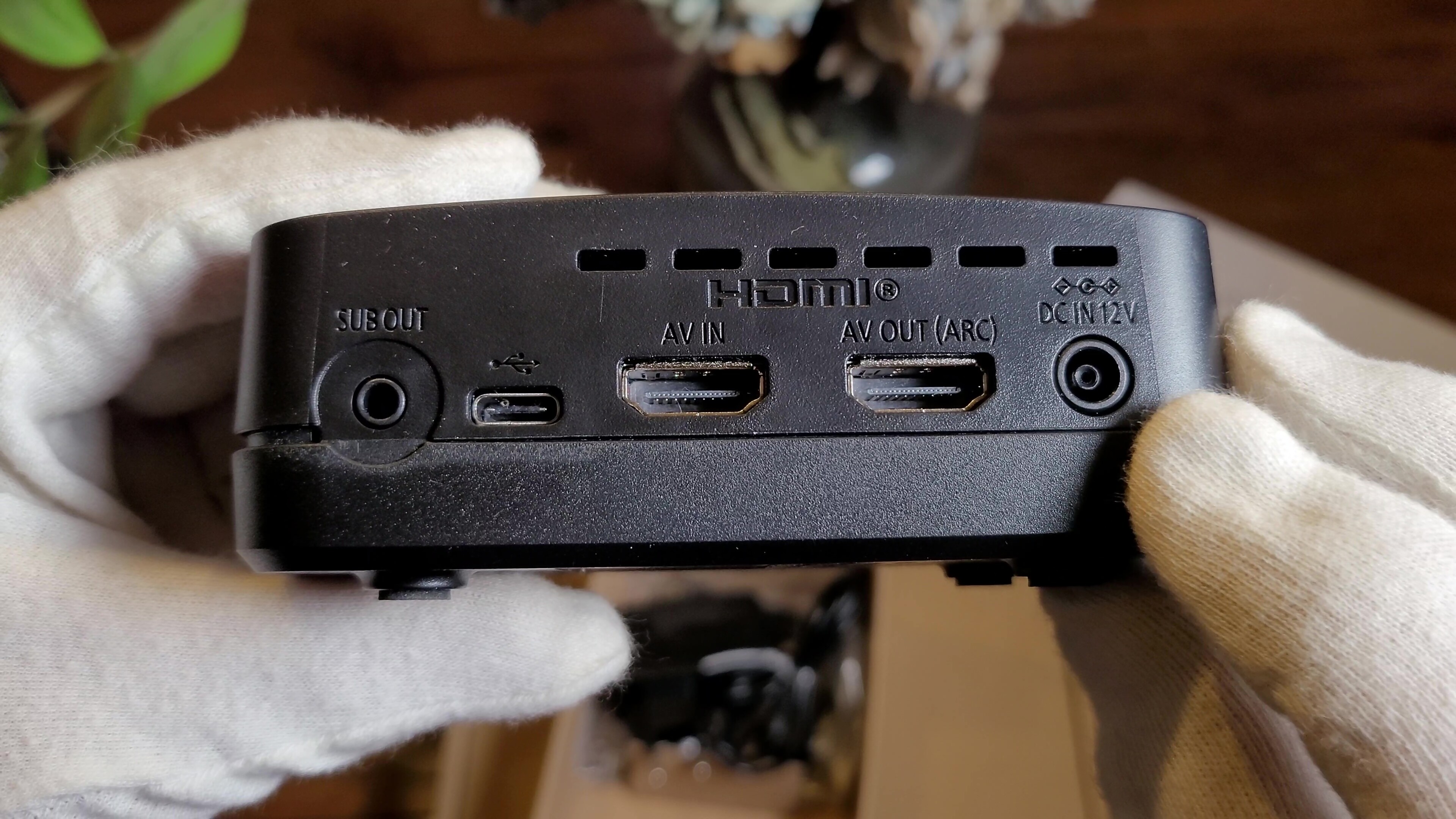 Le Panasonic SoundSlayer GNW30 dispose de deux micros intégrés, situés de part et d’autre, sachant qu’on peut couper le micro à tout moment. Il y a un bouton pour régler le volume bien sûr, mais aussi un autre pour configurer ses réglages audio, avec des modes FPS, RPG ou Voix et qu’on peut évidemment personnaliser à l’aide de l’application de bureau. La connectique suit le rythme aussi, avec du HDMI 2.1, du Bluetooth 5.3 qui permet de connecter le tour de cou avec d’autres appareils, sachant qu’on peut l’appairer avec jusqu’à deux appareils en simultané. Dans tous les cas, pour les joueurs sensibles, ceux qui portent des lunettes par exemple et qui étaient gênés par les casques gaming enveloppants, c’est un changement radical. Concernant son installation, le Panasonic SoundSlayer GNW30 se connecte avec ce petit boîtier que vous devez brancher à votre PC ou votre console. Rien de bien compliqué, mais avec le câble secteur, le HDMI et l’USB-C à connecter, on se rend compte qu’il s’agit avant tout d’un usage sédentaire et que vous ne pourrez pas vous balader avec en extérieur. Après, est-ce qu’on est prêt à se balader en extérieur avec un tel appareil, je ne suis pas sûr non plus…