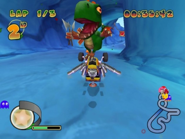 Pac-Man se lance aussi dans le rallye et plagie Mario Kart de bout en bout, le génie en moins...