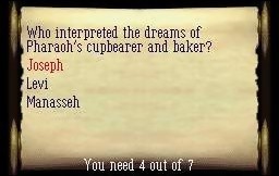 Pour ceux qui auraient suivi l’E3 sur JeuxActu, vous avez du tomber sur le fameux jeu religieux de Crave : The Bible Game. Aujourd’hui, l’éditeur nous présente des nouvelles images de son titre à mi-chemin entre quiz et party game pour les versions Playstation 2 et Xbox. The Bible Game proposera plus de 1.500 questions portant sur la Bible, pleins de mini-jeux et des modes multijoueurs accueillant jusqu’à 4 participants. Et pour parfaire le tableau, vous serez accompagné tout au long de votre périple par des artistes musicaux chrétiens tels que TobyMac, Newsboys, Kutless ou Jeremy Camp. L’adaptation Game Boy Advance sera quant à elle un jeu d’aventure mettant à rude épreuve votre culture judéo-chrétienne dont vous retrouverez quelques images ci-dessous. The Bible Game débarquera dans quelques jours aux Etats-Unis et probablement jamais en Europe ! Alléluia !