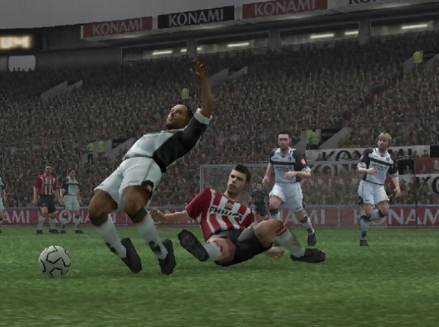 Petit à petit, la série des PES devient de plus en plus complète. Pour la quatrième édition, Konami a acquis les droits d’utilisation des clubs des championnats italiens, espagnols et hollandais, portant le total de clubs disponibles à 136 avec une cinquantaine de sélections nationales en plus. Pour fêter cela, voici de toutes nouvelles images tirées de ces ligues avec en guest stars, la Juve, la Lazio, l’Inter, l’Ajax, Feyenoord, Parme, la Roma, le Real, le Barca, Valence et Utrecht (cherchez l’erreur !).