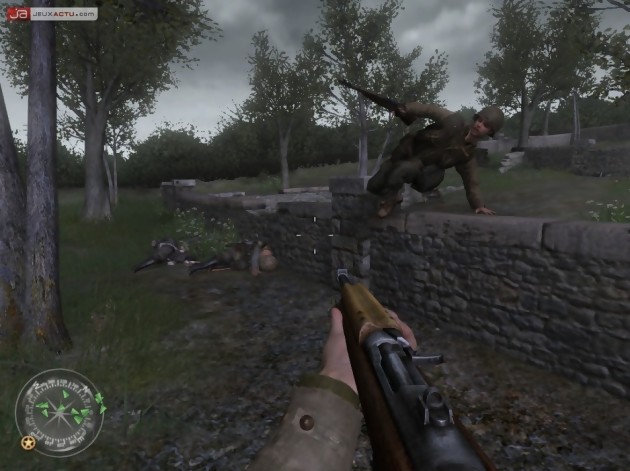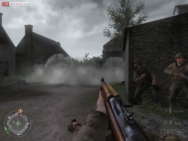 En attendant nos premières impressions sur l'intégralité de son jeu, Activision nous a donné le privilège de publier déjà quelques images de nos exploits de guerre. Enième FPS misant sur le phénomène de mode de la Seconde Guerre Mondiale, Call of Duty 2 joue une fois de plus de scripts impressionnants pour nous plonger directement au cœur du conflit et c’est sans surprise que l’on retrouve les campagnes russes (Stalingrad), Anglaises (en Afrique) et Américaine (sur les côtes françaises). Si la baseline est sans surprise, il faut tout de même avouer qu’elle fait toujours autant mouche, et la réalisation exceptionnelle du titre n’y est pas pour rien. Les balles fusent, l’ambiance sonore nous en donne plein les oreilles et les effets de fumée sont tout simplement les plus beaux jamais vu dans un jeu vidéo. Allez, on ne vous retarde pas plus longtemps et on laisse vos pupilles digérer cette bonne centaine d’images maison.