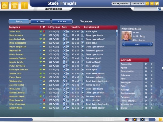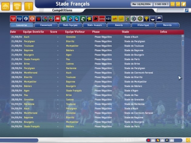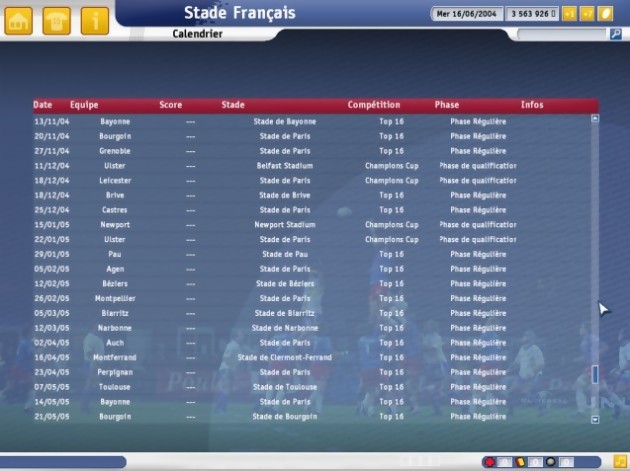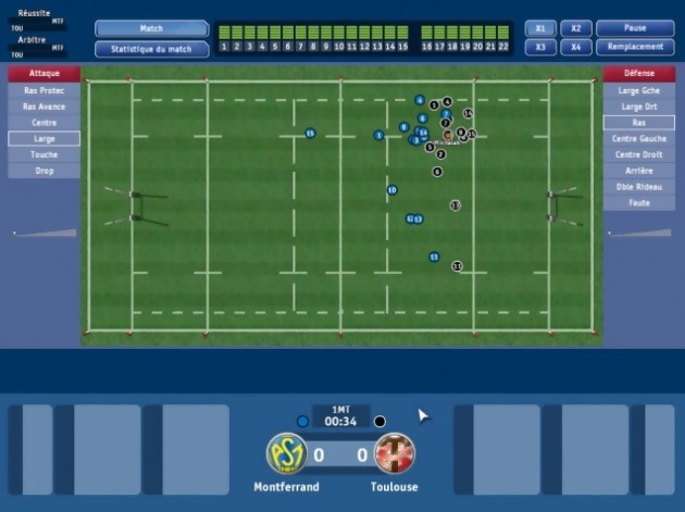 Prévu pour le 18 février, quelques points importants n’étaient pas encore implémentés comme, par exemple, la représentation des matchs avec le nouveau moteur, qui inclut plus de 500 animations différentes. La plupart des stades et des joueurs n’étaient pas non plus à jour, mais il ne s’agit que de petits réglages qui seront sans aucun doute mis à jour d’ici la sortie du jeu. Au final, on dénombre plus de 150000 joueurs recensés, 100 clubs, 50 équipes nationales, 4 nouveaux championnats (Canada, Japon, Irlande, Pays de Galles), près de 50 stratégies différentes entièrement ajustables à vos besoins, 34 stades fidèlement reproduits, une nouvelle interface plus clair et plus rapide, des replays des plus belles actions et une ambiance sonore parfaitement retranscrite. Avec l’appui cette année des ligues nationales françaises et anglaises, d’un soutien sans faille de joueurs pros, amateurs ou retraités, Pro Rugby Manager 2005 ne devrait pas avoir trop de mal à trouver son public. Et en attendant la Coupe du Monde 2007 qui aura lieu en France, il ne reste plus que deux ans à Cyanide pour nous offrir la simulation ultime, celle que toute