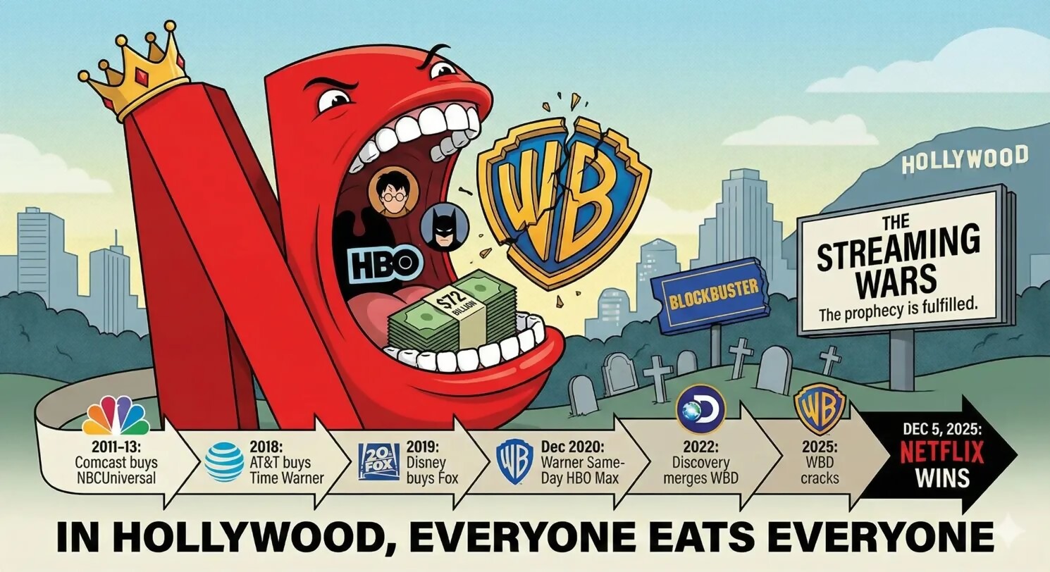 Voilà, c'est fait. Après plusieurs semaines d'âpres négociations entre Netflix, Comcast et Paramount, c'est finalement la plateforme de streaming qui remporte le deal chiffré à 82,7 milliards de dollars, dont 72 milliards pour les actions. Cet accord majeur entre Netflix et Warner Bros. Discovery inclut ses studios de cinéma et de télévision, HBO Max, HBO et la branche jeux vidéo Warner Bros. Games. L’accord devrait se finaliser dans les 12 à 18 mois, après la scission de la division TV de Warner Bros. Discovery, à savoir Discovery Global, prévue pour le troisième trimestre 2026. Dans les faits, chaque actionnaire de WBD recevra 23,25 dollars en espèces et 4,50 dollars en actions Netflix par action détenue. Netflix prévoit des économies annuelles de 2 à 3 milliards de dollars dès la troisième année suivant la clôture de l’accord. La transaction devrait être bénéfique pour le bénéfice par action dès la deuxième année, sachant que les conseils d’administration de Netflix et de Warner Bros. Discovery ont approuvé l’accord à l’unanimité. Il reste toutefois soumis aux approbations réglementaires et des actionnaires.