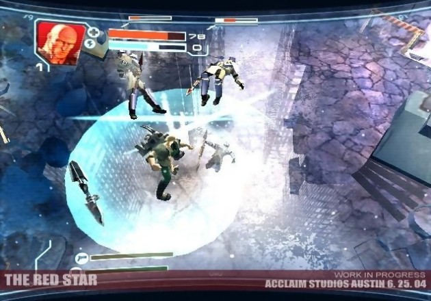 Même si la société bat de l’aile actuellement, Acclaim continue à communiquer autour de ses prochains jeux. Après Juiced, voici qu’arrivent aujourd’hui de nouvelles images de The Red Star, un jeu basé sur un comic book. Se déroulant dans un Empire Soviétique imaginaire, The Red Star narre les combats opposant des factions douées de pouvoirs magiques. Le jeu permettra de prendre le contrôle de trois personnages différents, chacun offrant des possibilités de gameplay propres. Prévu pour cet automne, The Red Star sortira sur PS2 et Xbox.