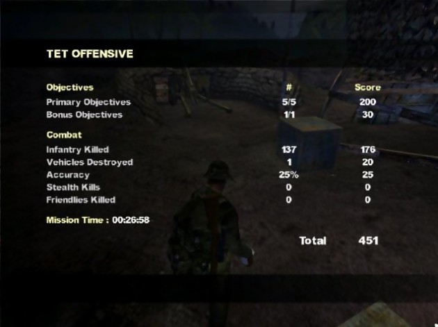Conflict Vietnam n’est pas a priori le jeu consacré à la guerre du Vietnam qui a fait le plus parlé de lui jusqu’à ce jour. Face au parti pris ultra réaliste de Shellshock Nam’ 67, le jeu de SCI a choisi la carte de la customisation. En effet, après chaque mission, vous serez gratifié d’un certain nombre de points en fonction de vos performances, qu’elles soient positives (points de vie, précision au tir,…) ou négatives (tir sur les civils ou sur vos propres troupes). Ces points serviront à améliorer les compétences de vos 4 compagnons dans le maniement d’armes ou d’autres aptitudes. En attendant d’en savoir plus, voici de nouvelles images tirées de la version PC du jeu.
