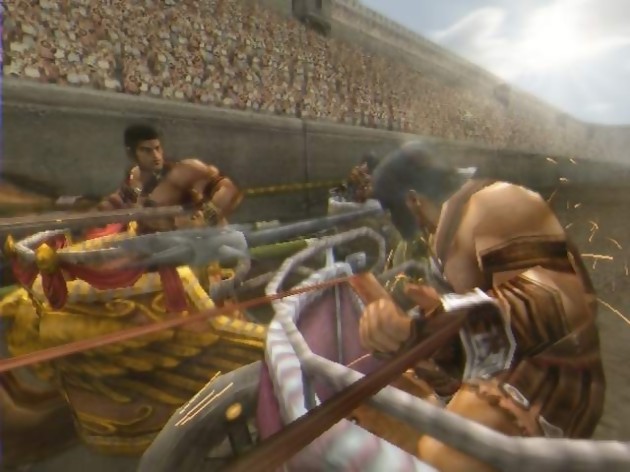 Ces nouvelles images de Shadow of Rome soulignent les combats virils qui attendent le joueur plongé en plein coeur de la Rome antique où les combats de gladiateurs avaient le vent en poupe. Très appréciés par leur spectacle détonant, les courses de chars feront partie des différentes possibilités de jeu qui composent le titre de Capcom. Mais Shadow of Rome collectionne les variétés de gameplay puisqu'en incarnant Octavius, le jeu prendra une dimension plus furtive avec la possibilité de se cacher et d'usurper l'identité de ses ennemis. La mise en boîte de Shadow of Rome est toujours fixée au 17 mars sous nos latitudes et uniquement sur PS2.