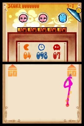 Disponible dans toutes les échoppes japonaises depuis quelques heures, Pac-Pix sortira également aux Etats-Unis où il est annoncé pour le 26 avril prochain. Bien entendu, cette version bénéficiera d'une localisation anglaise, ce qui devrait nous permettre de comprendre beaucoup mieux les informations qui apparaîtront sur les écrans de la DS et dont voici quelques écrans de jeu. Une version européenne est également prévue mais ne dispose à ce jour d'aucune date précise.