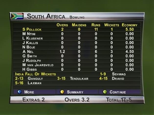 Codemasters n’a pas lésiné sur les moyens en nous proposant une vingtaine de screenshots de Brian Lara International Cricket 2005. Comme vous pouvez le supposer, le jeu sortira exclusivement en Angleterre cet été mais ce n’est pas une raison pour l’éditeur de ne pas lâcher quelques informations utiles pour tous les amateurs de ce sport si particulier. Codemasters est fier d’offrir à son titre la toute nouvelle technologie Hawk-Eye qui permet de visualiser, d’analyser les faits et gestes de ses sportifs mais également d’étudier la trajectoire de la balle afin de prendre les bonnes décisions au bon moment. Brian Lara International Cricket 2005 proposera en plus des tournois ICC Cricket World Cup et ICC Champions un Mode Classic Matches avec son filtre noir et blanc si particulier.