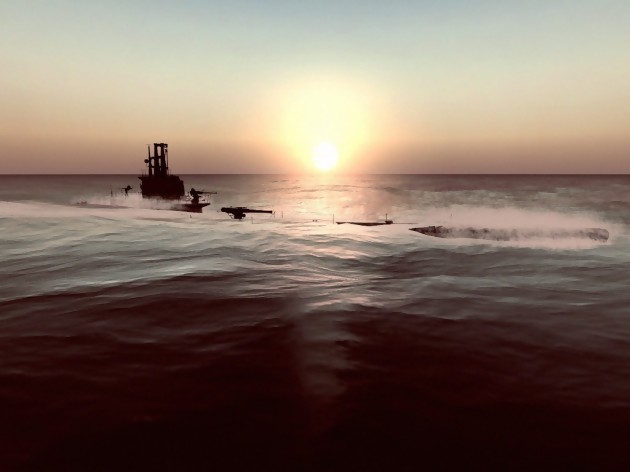 C'est avec parcimonie qu'Ubisoft a décidé de diffuser les images de Silent Hunter 4 : Wolves of The Pacific, nouvelle itération de cette simulation de sous-marin qui continue son petit bonhomme de chemin sur PC. On peut apprécier donc un joli coucher de soleil, un officier marin en train de gratter quelques mots ou bien des chiffres sur un bon de papier ainsi qu'une subermersion en action également accompagnée d'un magnifique coucher de soleil. La sortie de Silent Hunter 4 : Wolves of The Pacific est prévue pour le début de l'année 2007.