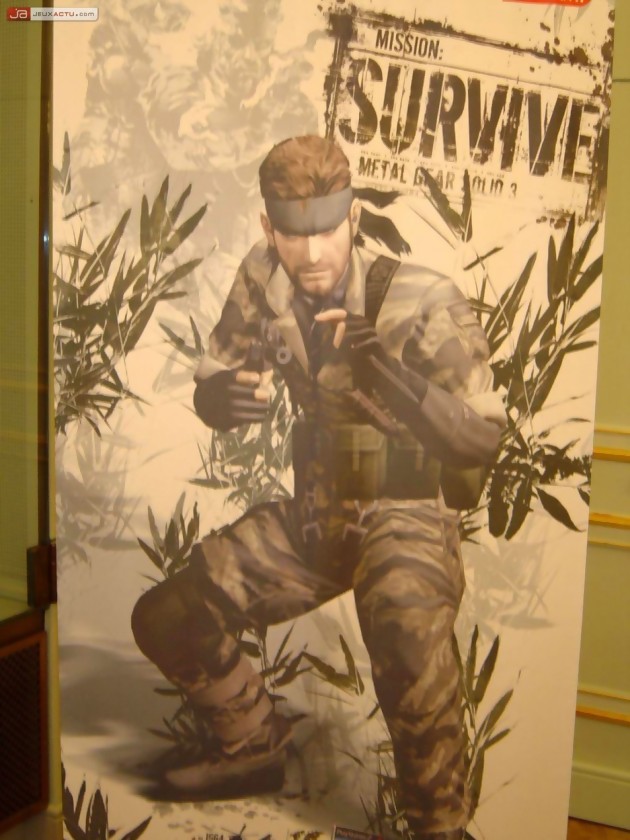 Mercredi 2 mars 2005, c’est dans une salle de conférence du prestigieux Hôtel Adlon, qu’était rassemblée une bonne partie de la presse européenne, conviée au lancement sur notre territoire du très attendu Metal Gear Solid 3 par Hideo Kojima en personne. En guise d’introduction, Kazumi Kitaue, le responsable européen de Konami fit une brève présentation, affirmant que Metal Gear Solid 3 était le meilleur épisode à ce jour avant de céder la place à Kojima San, arrivant sous les applaudissements du public. D’emblée, le géniteur de la saga Metal Gear Solid 3 définit ce troisième épisode comme le point final de la trilogie avant de se lancer dans une présentation un peu plus détaillée du jeu et de son environnement. Replaçant Metal Gear Solid 3 dans l’actualité, Hideo Kojima précisa que la période de la guerre froide avait été choisie à dessein et que l’humanité devait tirer les enseignements de l’histoire en ne répétant pas les mêmes erreurs, évoquant la séparation de la Corée en deux entités ennemies. Ce préambule accompli, une nouvelle bande-annonce fut projetée sur l’écran géant de la salle, la seule véritable nouveauté qu’il contenait résidant dans la présence des maquillages spécifiques à la version européenne. Reprenant la parole, Hideo Kojima se chargea de disséquer l’essence du dernier volet du triptyque Metal Gear Solid à partir du concept clef de survie.