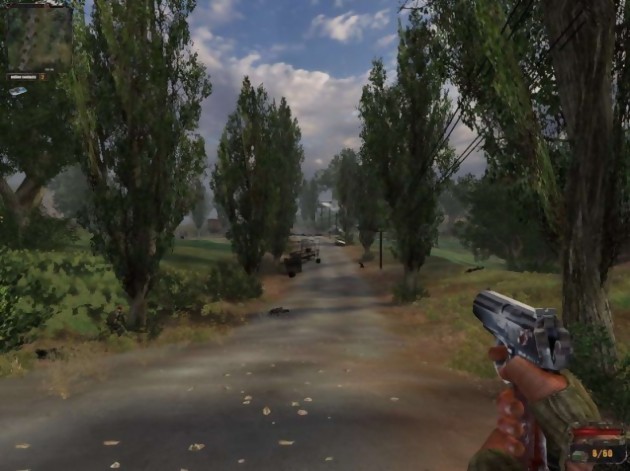 Novice, et logiquement inexpérimenté, vous voilà recueilli par un vieil homme, connu sous le nom de « The Dealer » un doux sobriquet qui n’indique pourtant pas la présence de substances illicites (quoique… sait-on jamais ?). Le dealer réside sous terre, dans une sorte de bunker et c’est lui qu’il vous faudra contacter pour obtenir les principales informations. Le texte défile sous vos yeux ébahis, avec différentes options de dialogue. N’oubliez pas que vous lui êtes redevable. Puisqu’il vous a offert son hospitalité, vous accepterez la première mission qu’il va vous confier. Les infos ainsi glanées sont stockées et updatées dans votre PDA, qui peut être consulté à tout moment. Missions, contrats, résumé des hommes en présence, principales caractéristiques des espèces animales, détails sur les zones environnantes, tout y est compilé. Une économie parallèle s’est développée dans la zone désaffectée. S’inspirant de lieux réels reproduits quasi à l’identique, les lieux à visiter s’étendent sur près de 30 km². Il vous faut trouver des artefacts, qui apparaissent le plus souvent près d’une source d’énergie non encore identifiée, afin de les revendre au Dealer et récolter de la menue monnaie. Un véritable commerce va s’établir entre les différents Stalkers, certains agiront en bande et la renommée de chacun va revêtir une grande importance. Si vous tuez chaque Stalker que vous rencontrez, vous voilà bon pour vous forger une solide réputation de killer. Tous ces détails seront peu à peu compilés dans votre PDA. Une bonne trentaine d’armes seront disponibles, ainsi que six véhicules (qui vont de la bonne vieille Lada des familles au blindé léger). Les réactions des animaux et des humains que vous rencontrerez n’étant pas scriptées, l’effet de surprise et les réflexes seront largement mis en avant. Restez sur ses gardes chaque seconde, telle est votre tâche. Tout en s’accordant de temps en temps à une généreuse rasade de vodka, une boisson apparemment réputée pour lutter contre les effets des radiations.