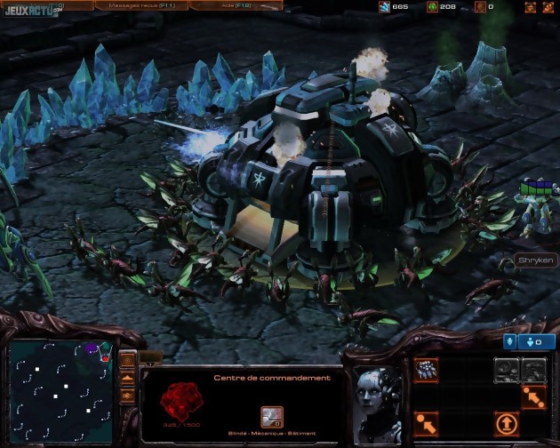 On peut ainsi sécuriser les alentours du domaine Zerg au fil de son expansion, sans avoir forcément à réinvestir dans de nouveaux aiguillons. Attention toutefois à ne pas laisser le centre-ville sans aucune défense car les puissants Protoss pourraient bien en profiter. Toujours aussi costaude, cette race dispose d'unités très puissantes mais plus lentes à développer. A ceci près qu'une fonction inédite d'accélération de production fait son apparition. Grâce à l'énergie sans cesse renouvelée du bâtiment principal, on peut en effet déclencher un pouvoir de boost, qui augmente de 50 % la vitesse de construction du bâtiment de production visé. Ce bonus monte même à 100% s'il est lancé sur un bâtiment de recherche ! Vous l'aurez compris, les trois races sont plus différenciées que jamais et une spécialisation dans l'une d'entre elles est fortement conseillée pour espérer briller dans les ligues et classements de la plateforme Battle.net. C'est une nouveauté : au bout d'une dizaine de parties, Starcraft II possède suffisamment de données pour évaluer votre niveau et vous ranger dans l'une des nombreuses ligues générées automatiquement. Chaque ligue correspond à un groupe de cent joueurs de niveau équivalent, qui peuvent bien entendu changer de division selon leurs performances dans les matchs retenus par la fonction de recherche automatique de parties. Tout est donc fait pour motiver les joueurs à participer sans cesse à de nouveaux affrontements, et il ne fait nul doute que le jeu va s'imposer comme une référence dans le monde de l'e-sport. La partie solo ayant été divisée en trois jeux indépendants, nous sommes également en droit d'espérer un scénario extrêmement fouillé et intéressant. Symétriques et génériques à souhait puisque dédiées au multi, les différentes maps que nous avons pu parcourir n'ont évidemment rien de transcendant mais elles innovent tout de même légèrement puisque certaines d'entre elles disposent les bases sur des hauteurs et en bloquent le chemin d'accès par une barrière de rochers. Cela ne veut pas forcément dire qu'il faut uniquement compter sur les unités volantes, car ces pierres sont en réalité destructibles. Libre au joueur de les conserver intactes pour se protéger ou de les détruire rapidement pour mieux attaquer le voisin. Limité pour l'heure à des affrontements en un contre un, deux contre deux, ou chacun pour soi, StarCraft II devrait se montrer encore plus stratégique et prenant quand nous pourrons profiter des matchs à huits joueurs. Prions pour que ce soit le cas avant la fin de l'année !