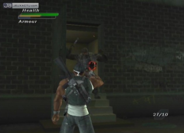 Médiatisé à outrance, 50 Cent (Curtis Jackson de son vrai nom) est également considéré comme l’une des plus grandes stars de rap US du moment. Son passif d’ancien gangster lui a valu un long séjour à l’hôpital – neuf balles dans le corps quand même - mais aussi le respect d’autrui, avant de devenir la masse musculaire qu’on connaît. Motivé comme jamais, notre voyou monopolise désormais la tête du box office de la musique et plus récemment du cinéma où il joue tout simplement son propre rôle dans le film "Réussir ou Mourir". Sniffant de très loin la bonne affaire commerciale, Vivendi Universal Games s’est empressé de récupérer les droits pour en faire un jeu vidéo sur consoles. Si 50 Cent : Bulletproof n’est pas l’adaptation exacte du film qui pollue actuellement nos salles de cinéma, il surfe en revanche sur le succès planétaire du rappeur black où le politiquement incorrect est également de mise. Action non-stop, gunfights à répétition, gerbes de sang et violence (aussi bien verbale que physique) ubiquiste, 50 Cent : Bulletproof possède tous les ingrédients pour se hisser en tête des charts. Le cocktail fonctionne plutôt bien puisque le titre s’est déjà écoulé à plus d’un million d’exemplaires aux Etats-Unis et se vend également très bien en Europe depuis sa récente sortie. Il n’en demeure pas moins que 50 Cent : Bulletproof fait partie de ces jeux à licence bâclés où l’ensemble de l’argent est partie directement dans les poches de la vedette en question et des grandes majors qu’il faut payer en droits et autres royalties. Forcément, le développement souffre de nombreuses lacunes et on ne sera pas étonné de voir un titre où la réalisation technique traîne la patte (graphismes laids et animations datant d’un autre âge) et où l’intérêt ludique est réduit à son strict minimum. Reprenant le concept élaboré par Max Payne, 50 Cent : Bulletproof nous invite à prendre le contrôle du rappeur bodybuildé, accompagné de ses lascars de la G-Unit que sont Buck, Banks et Yayo. Ensemble, ils vont faire les 400 coups mais surtout éliminer tous ceux qui souhaiteraient leur mettre des bâtons dans les roues. Le jeu se résume à avancer bêtement d’un point A à un point B tout en tirant massivement sur tout ce qui bouge à l’écran. Que ce soit du côté des membres de la G-Unit (les coéquipiers donc) ou des ennemis, l’intelligence du titre n’a jamais été aussi artificielle. Bien évidemment, les fans trouveront leur plaisir ailleurs que dans le jeu puisque Vivendi Universal Games a eu l’ingénieuse idée de proposer des bonus à débloquer pour accéder à des musiques et des clips inédits de 50 Cent. Astucieux. Toujours est-il qu’en matière de jeu vidéo, 50 Cent : Bulletproof est loin de faire l’affaire.