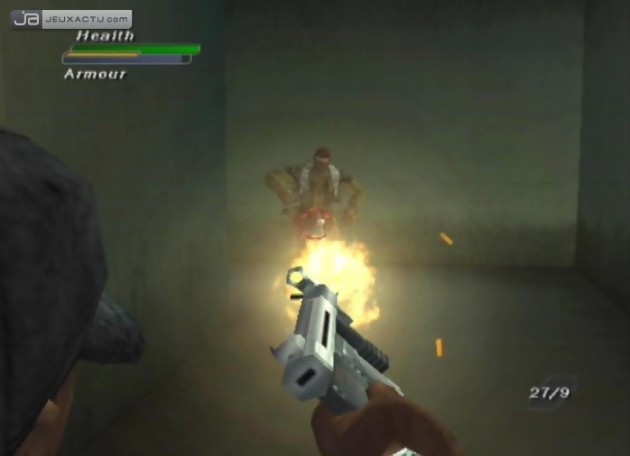 Médiatisé à outrance, 50 Cent (Curtis Jackson de son vrai nom) est également considéré comme l’une des plus grandes stars de rap US du moment. Son passif d’ancien gangster lui a valu un long séjour à l’hôpital – neuf balles dans le corps quand même - mais aussi le respect d’autrui, avant de devenir la masse musculaire qu’on connaît. Motivé comme jamais, notre voyou monopolise désormais la tête du box office de la musique et plus récemment du cinéma où il joue tout simplement son propre rôle dans le film "Réussir ou Mourir". Sniffant de très loin la bonne affaire commerciale, Vivendi Universal Games s’est empressé de récupérer les droits pour en faire un jeu vidéo sur consoles. Si 50 Cent : Bulletproof n’est pas l’adaptation exacte du film qui pollue actuellement nos salles de cinéma, il surfe en revanche sur le succès planétaire du rappeur black où le politiquement incorrect est également de mise. Action non-stop, gunfights à répétition, gerbes de sang et violence (aussi bien verbale que physique) ubiquiste, 50 Cent : Bulletproof possède tous les ingrédients pour se hisser en tête des charts. Le cocktail fonctionne plutôt bien puisque le titre s’est déjà écoulé à plus d’un million d’exemplaires aux Etats-Unis et se vend également très bien en Europe depuis sa récente sortie. Il n’en demeure pas moins que 50 Cent : Bulletproof fait partie de ces jeux à licence bâclés où l’ensemble de l’argent est partie directement dans les poches de la vedette en question et des grandes majors qu’il faut payer en droits et autres royalties. Forcément, le développement souffre de nombreuses lacunes et on ne sera pas étonné de voir un titre où la réalisation technique traîne la patte (graphismes laids et animations datant d’un autre âge) et où l’intérêt ludique est réduit à son strict minimum. Reprenant le concept élaboré par Max Payne, 50 Cent : Bulletproof nous invite à prendre le contrôle du rappeur bodybuildé, accompagné de ses lascars de la G-Unit que sont Buck, Banks et Yayo. Ensemble, ils vont faire les 400 coups mais surtout éliminer tous ceux qui souhaiteraient leur mettre des bâtons dans les roues. Le jeu se résume à avancer bêtement d’un point A à un point B tout en tirant massivement sur tout ce qui bouge à l’écran. Que ce soit du côté des membres de la G-Unit (les coéquipiers donc) ou des ennemis, l’intelligence du titre n’a jamais été aussi artificielle. Bien évidemment, les fans trouveront leur plaisir ailleurs que dans le jeu puisque Vivendi Universal Games a eu l’ingénieuse idée de proposer des bonus à débloquer pour accéder à des musiques et des clips inédits de 50 Cent. Astucieux. Toujours est-il qu’en matière de jeu vidéo, 50 Cent : Bulletproof est loin de faire l’affaire.