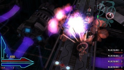 Là où ça se gâte, parce que ça se gâte bien entendu, c’est lorsqu’on se focalise sur la réalisation générale de ce remake PSP. On sent dès les premières minutes que les développeurs de Totally Games ne sont pas à l’aise sur consoles portables. Bien entendu, on pourrait souligner l’absence de cinématiques dignes de ce nom, mais la réalisation des artworks accompagnant les prémices de l’histoire sauve les meubles. Non, c’est surtout une fois en jeu que les choses se compliquent durablement. A commencer par le choix des textures et du level design. L’ensemble est beaucoup trop monotone, avec des enchaînements de niveaux labyrinthiques beaucoup trop similaires du sol au plafond, et un moteur graphique en dessous de ce qu’il se fait actuellement sur PlayStation Portable. Idem pour le bestiaire d’Alien Syndrome. En plus d’offrir un character design bâclé, il n’y a pas une grande variété d’ennemis et seul leur nombre nous fait oublier le temps d’un combat ce manque de diversité. Autre souci et non des moindres, les créatures venues de l’espace apparaissent comme par enchantement, et il est impossible de prévoir à l’avance combien de bestioles il faudra s’enquiller avant de traverser une pièce. Rageant. Ce défaut amène un deuxième problème, celui du framerate qui nous joue des tours lorsqu’une dizaine d’ennemis rampe jusqu’à vos basques. C’est relativement casse-pieds quand on sait que le genre hack’n slash souffre forcément d’une certaine monotonie de jeu. Pour éviter de tomber dans cette lassitude, on se retournera vers le mode multijoueur où il est possible de collaborer avec trois autres joueurs pour mener à bien votre mission, tout en conservant l’évolution de votre avatar. Pour terminer ce tour d’horizon de la réalisation générale d’Alien Syndrome, on notera des musiques anecdotiques et des dialogues qui buggent lors des cut scenes. Un manque de finition, c’est certain.