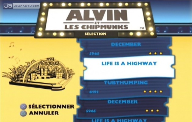 Une fois n’est pas coutume, l’adaptation en jeu vidéo d’Alvin et les Chipmunks arrive un mois après la sortie au ciné du film réalisé par Tim Hill. Et contrairement aux idées reçues, il ne s’agit pas d’un énième jeu d’action/plates-formes teinté d’aventure auquel nous avons droit ici mais à un jeu musical repompant allégrement un certain Guitar Hero, la guitare et le talent en moins. Attention, belle daube en perspective !