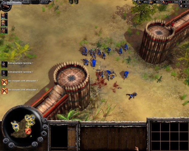 Dès lors, les développeurs auront beau fait tous les efforts du monde, la crédibilité de leur jeu est déjà bien encornée. Sur le plan technique, Sparta propose un gameplay classique, assez inspiré de Warcraft III, et les habitués prendront leur repère dès les premières secondes écoulées. La récolte des ressources (or, bois et nourriture) est indispensable en début de partie pour bâtir une puissance économique suffisamment forte pour développer de nouvelles technologies, former une armée, l’équiper et bien sûr la ravitailler. En effet, des guerriers affamés pourront perdre jusqu’à 90% de leur capacité. Mieux vaut donc jeter un œil protecteur de temps en temps sur la jauge de ses réserves alimentaires. Au niveau des affrontements, on accueille à bras ouverts les quelques features proposées : capturer les chevaux ou les armes des ennemis tombés au combat, piéger certaines zones terrestres avec des lances pour que ces derniers s’y empalent dessus ou encore placer des pierres au dessus d’une falaise pour mieux les aplatir. Il y a bien évidemment quelques spécificités tribales (les perses n’ont par exemple pas besoin de construire un chantier naval, etc.) mais l’équilibre entre chaque nation est respectée. C’est d’autant plus vrai qu’il n’y a pas réellement d’unités guerrières déterminées. En effet, on arme à sa guise chacun de ses hommes. Bouclier, épée, etc. chaque équipement pèse lourd sur la balance financière mais peut faire la différence au combat. Une option stratégique plutôt sympathique mais finalement sous-exploité à cause de la dynamique du jeu.