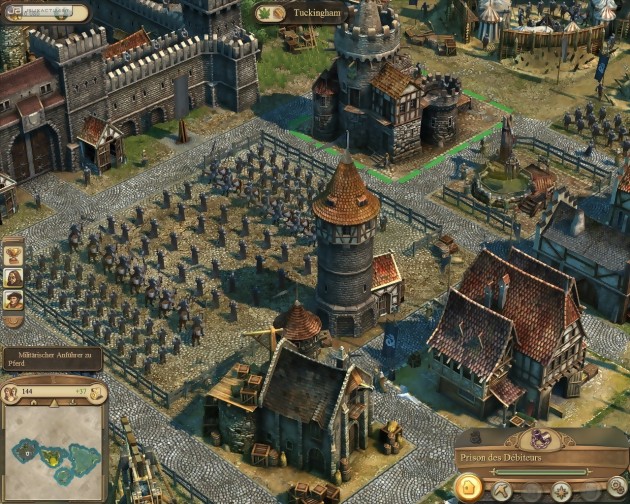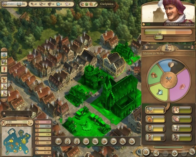 Par ailleurs, si la présence d'une civilisation orientale est naturellement source de dépaysement graphique, elle sert également de prétexte à l'introduction d'une seconde devise : l'honneur. Pour en gagner, il faut essentiellement gagner l'estime de l'Orient en remplissant de nombreuses petites quêtes ou en atteignant certains objectifs chiffrés. On peut alors dépenser ces points d'honneur comme on le souhaite, et acquérir par là même différents bonus temporaires ou permanents, l'un des plus intéressants prenant la forme d'une graine destinée à modifier la fertilité d'une île afin de pouvoir y cultiver une ressource supplémentaire. Enfin on pourra clore le chapitre des nouveautés en évoquant une légère modification du système d'évolution et de classification des besoins. D'apparence anodine, cette subtilité influe en réalité sur la façon dont doivent être agencés certains bâtiments et augmente la nécessité d'établir des routes commerciales pertinentes. Ces dernières sont d'ailleurs beaucoup plus simples à définir qu'auparavant. D'une manière plus générale, le travail de remaniement effectué sur l'interface est admirable. Elle est un peu plus pratique qu'auparavant (ce qui en soi est déjà un petit exploit) et beaucoup plus esthétique. Ces louanges peuvent être étendus aux graphismes dans leur ensemble, tant d'un point de vue technique qu'artistique. jeu regorge d'animations extrêmement détaillées, qui insufflent de la vie à cet univers virtuel. On se surprend régulièrement à zoomer au maximum juste pour le plaisir d'observer un souffleur de verre au travail ou un cochon qui se roule dans la boue. Même les déplacements des nombreux habitants de chaque ville suivent une logique crédible, à l'image des diverses charrettes de ravitaillement, ou de ce pêcheur à la ligne anonyme qui effectue un long trajet depuis son domicile jusqu'au bord de mer.