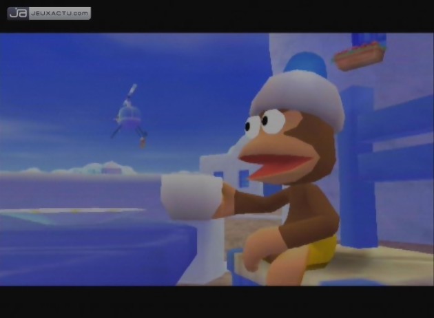 Dommage cependant, de devoir replonger une seconde fois dans chaque niveau pour capturer les quelques singes qui manquent à l’appel. En effet, en premier lieu le stage se clôture automatiquement une fois les trois-quarts des chimpanzés capturés. Il est donc obligatoire de refaire chaque stage pour récupérer les autres dissidents. Des insoumis qui, pour la petite histoire, se rebellent sous la houlette du démoniaque Specter, dont l’objectif n’est pas vraiment original puisque nous y faisons face chaque jour dans notre vie quotidienne : l’abêtissement télévisuel des masses. Un synopsis qui permet au jeu vidéo une énième singerie (tadam tzing !) envers les nombreuses images d’épinal du cinéma. On aura alors droit à quelques babouins grimés de façon rigolote, avec moult clins d’œil et parodies donc, mais comme d’habitude lorsque le jeu vidéo s’essaye au registre de la parodie cinématographique, ne vous attendez pas à un tas de subtilité ou à des mises en scènes particulièrement pertinentes. Allez, mention spéciale quand même pour la version simiesque de Ona Nobunaga, qui se plaint très judicieusement du fait qu’on le fasse toujours passer pour le méchant de l’histoire.