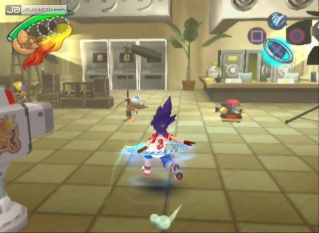 Quand Saru ! Get You !, nom original de Ape Escape, sort sur PSOne en 1998, les repères du joueur s’en trouvent tout bouleversés. Pensez donc, voici un jeu où les actions les plus fondamentales, comme donner des coups de bâtons ou attraper un singe avec un filet à papillons, ne s’effectuent plus avec les boutons mais en orientant le stick analogique droit. Une nouveauté alors perçue avec plus ou moins de scepticisme, surtout que le Dual Shock 2 n’est pas encore la manette par défaut à cette époque. Mais en huit ans, de l’eau a coulé sous les ponts, et de nombreux jeux ont optimisé l’utilisation des deux sticks avec plus ou moins de mérite (Death By Degrees, Monster Hunter, ou encore Katamari Damacy), nous familiarisant avec une gestion analogique des deux pouces, et qui ont su démontrer l’optimisation intéressante d’une manette que l’on a pas fini de saisir, puisque reconduite dans sa version gyroscopique avec la PlayStation 3.