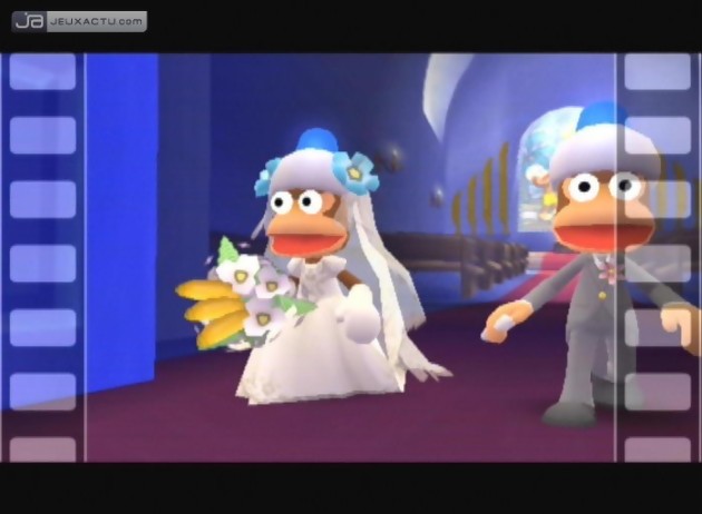 Dommage cependant, de devoir replonger une seconde fois dans chaque niveau pour capturer les quelques singes qui manquent à l’appel. En effet, en premier lieu le stage se clôture automatiquement une fois les trois-quarts des chimpanzés capturés. Il est donc obligatoire de refaire chaque stage pour récupérer les autres dissidents. Des insoumis qui, pour la petite histoire, se rebellent sous la houlette du démoniaque Specter, dont l’objectif n’est pas vraiment original puisque nous y faisons face chaque jour dans notre vie quotidienne : l’abêtissement télévisuel des masses. Un synopsis qui permet au jeu vidéo une énième singerie (tadam tzing !) envers les nombreuses images d’épinal du cinéma. On aura alors droit à quelques babouins grimés de façon rigolote, avec moult clins d’œil et parodies donc, mais comme d’habitude lorsque le jeu vidéo s’essaye au registre de la parodie cinématographique, ne vous attendez pas à un tas de subtilité ou à des mises en scènes particulièrement pertinentes. Allez, mention spéciale quand même pour la version simiesque de Ona Nobunaga, qui se plaint très judicieusement du fait qu’on le fasse toujours passer pour le méchant de l’histoire.
