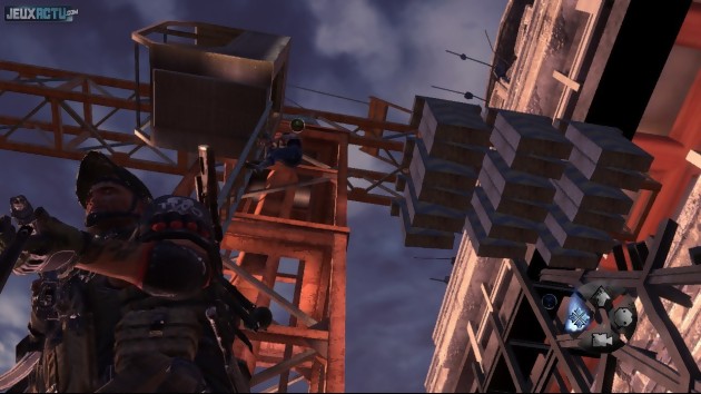 Celui d'Army of Two : Le 40ème Jour continue de s'appuyer sur ce qui avait été fait en 2008, avec quelques nouveautés pour répondre aux exigences d'aujourd'hui. En commençant par la possibilité désormais de marquer ses ennemis via le GPS, ce qui permet du coup de repérer beaucoup plus facilement les innocents retenus en otage par les terroristes, pour lesquels un système de grade a d'ailleurs été mis en place. En effet, en se saisissant d'un officier d'un rang supérieur, le reste de la troupe se rendra immédiatement. A l'inverse, si on décide de s'en prendre à un soldat d'une classe inférieure, le résultat de la manoeuvre sera beaucoup plus aléatoire. Une autre tactique d'approche consiste à simuler sa reddition, en baissant les yeux et en se mettant à genoux. En pressant la gâchette droite de la manette, on active alors une brève séquence en bullet time qui permet d'éliminer les soldats en quelques balles, avant que ceux-ci n'aient le temps d'abattre les otages. Il revient donc aux partenaires de choisir l'une ou l'autre des solutions en fonction de la situation. Libérer les civils permet non seulement de se remplir les poches, mais également de débloquer des objets pour parfaire son arsenal ; sans oublier qu'ils n'hésiteront pas à prêter main forte quelques niveaux plus tard. Bref, une idée qui relève le challenge tellement Army of Two : Le 40ème Jour n'oppose aucune résistance, que ce soit en "Occasionnel", en "Normal" ou en "Entrepreneur". L'I.A., puisque c'est de cela dont il s'agit, verse dans la naïveté excessive pour justifier la présence de l'aggromètre, qui a pris un sacré coup de vieux depuis la popularisation de la coopération. La formule est la même que dans l'Army of Two original : l'un des joueurs doit attirer l'attention des gardes afin que son partenaire puisse mieux les prendre revers.