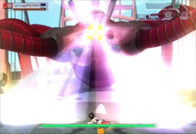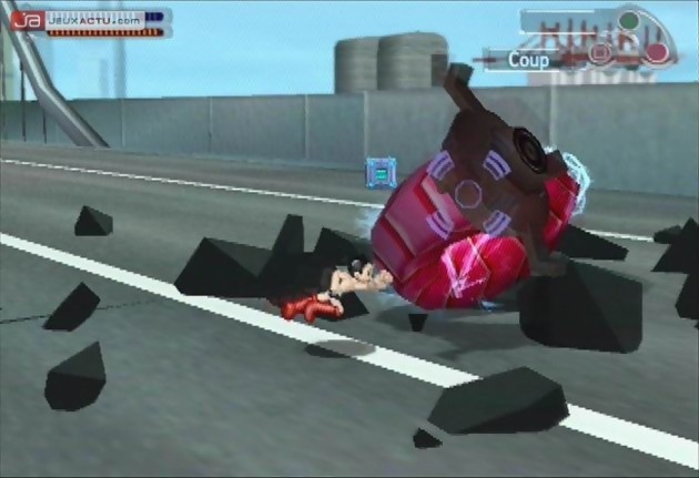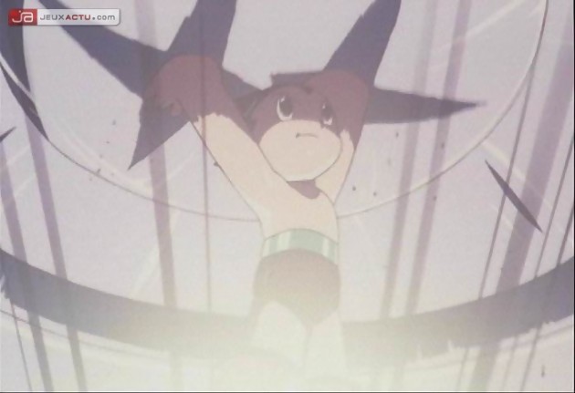 Les présentations sont faites par une superbe séquence animée qui nous introduit dans les prémices de la série, c'est-à-dire que l’on assiste à la tentative du professeur Tenma de sauver son fils et de créer le roi des robots par la même occasion. Fruit de cette expérience, Astro est une symbiose entre l’intelligence artificielle et la conscience humaine. Doté d’un sens aigu de la justice, il se découvre très vite de nouveaux pouvoirs qu’il mettra au service de cette cause. Tout d’abord, il acquiert des pieds- fusées puis une ouïe supersonique, suivi d’un doigt laser ou encore un bras canon, bref il ne lui manque plus que le café ! Tout au long de l’histoire, Astro est un peu perdu, à la recherche d’un passé qu’il n’a pas et est tenté de passer du côté obscur. Autrement dit, il hésite à assouvir les projets machiavéliques de son créateur. Une trame scénaristique qui a déjà fait ses preuves et aux multiples rebondissements. En effet, j’ai crû par quatre fois avoir terminé l’aventure, avant de me rendre compte du contraire. Une aventure un peu courte par contre, qui se chiffre à environ cinq heures de jeu. On pourra toujours s’amuser à collectionner des cartes disséminées un peu partout ou accomplir des quêtes annexes qui pourront mettre à rudes épreuves vos méninges, notamment l’épreuve qui réclame de retrouver le nom des chiens du quartier… No comment.