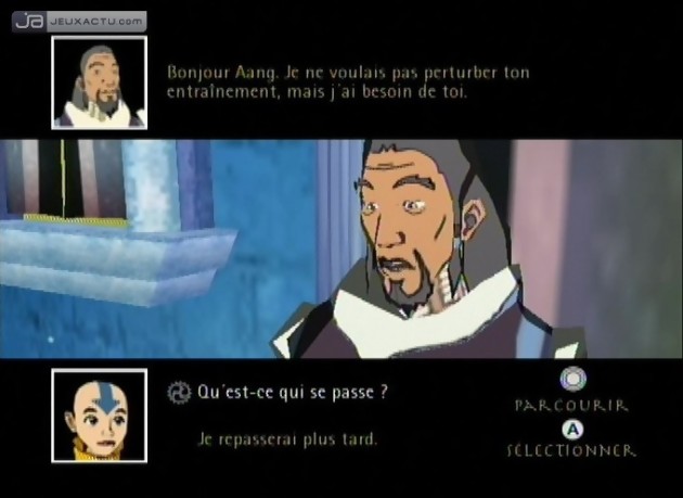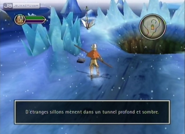 Aux côtés de Bob l'Eponge : La Créature du Crabe Croustillant, THQ a accompagné le lancement de la nouvelle console de Nintendo avec Avatar : Le Dernier Maître de l'Air. Les plus jeunes télévores reconnaîtront sans mal le premier jeu estampillé du nom de la nouvelle série phare de Nickelodeon. Oubliez les mollusques psychotiques et les génies aux cerveaux surdimensionnés, ce dessin animé met en avant le destin de quatre gamins qui doivent rétablir l’ordre et la sérénité sur le monde. Suite à la mort du précédent Avatar, haut responsable de chaque nation capable de maîtriser les 4 éléments suivants Eau, Feu, Terre et Air, le chef de la Nation du Feu a déclenché une guerre sans précédent pour dominer les pays voisins en convoitant leurs pouvoirs. Le jeu en reprend le scénario avec pour héro Aang, un bambin de 12 ans capable de maîtriser l’Air. Accompagné de Haru, Katara et Sokka, vous devrez donc parcourir les grandes étendues du jeu et affronter la Nation du Feu. Le souhait de Studio Oz est de faire d’Avatar : Le Dernier Maître de l'Air un jeu d’aventure pour les plus jeunes mais pour donner plus de profondeur à leur soft, les développeurs ont opté pour un système de jeu proche du hack’n slash. D’ailleurs l’angle de vue utilisé fait volontairement penser aux meilleurs jeux du genre dommage cependant que l’on ne puisse pas pivoter la caméra car selon le décor, il n’est pas rare de se retrouver caché par un rocher ou un pilier. L’autre point commun avec ce genre d’Action-RPG, c’est le système de combat. Vous attaquerez en temps réel vos adversaires afin de glaner points d’expérience, objets et pièces d’or utiles pour améliorer les compétences de votre personnage mais aussi son arsenal. Et c’est principalement sur ce point que la version Wii d’Avatar : Le Dernier Maître de l'Air se démarque de ses clones. Si les déplacements de votre avatar (avec ou sans majuscule) sont gérés avec le stick du Nunchuk, les attaques physiques ou les utilisations des éléments sont associées aux mouvements de la Wiimote. Au fur et à mesure de votre progression, vous débloquerez de nouveaux coups et en combinant boutons et gestes de la main pour terrasser tous les ennemis qui vous barreront la route. A ce propos, la facilité de jeu est exagérée par une progression des personnages rapides et une I.A. plutôt faiblarde. Côté gameplay, Studio Oz s’est contenté du strict minimum et Avatar : Le Dernier Maître de l'Air ne parvient pas à nous amuser autant qu’un Bob l'Eponge : La Créature du Crabe Croustillant à cause d’un manque de précision dans les commandes et des attaques bien trop limitées. Cependant, les aficionados de la série trouveront un malin plaisir à contrôler Aang et ses amis notamment grâce à une esthétisme graphique proche du dessin animée mais qui manque malheureusement de détails.