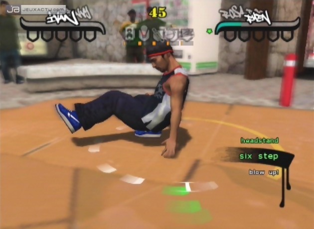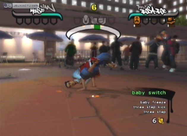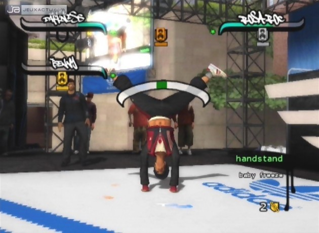 Les battles sont soumis à des impératifs de victoire. Et pour mettre toutes les chances de votre côté, il faut vous référer aux aptitudes notées sur l'écran. Au nombre de 5, ces médailles sont les critères à remplir pour espérer battre votre adversaire. Sont pris en compte la réalisation des mouvements de bases, le rythme, la créativité, la puissance et la qualité d'enchaînement des figures. Par conséquent, il faudra briller dans chacune de ces classes afin de remporter le duel en cours. Bien entendu au début de votre apprentissage seulement trois médailles apparaissent, mais plus vous emmagasinez de l'expérience, plus vous avez de médailles à conquérir. Le système de médaille fonctionne avec une jauge de réussite qui évolue selon vos performances et celle de votre adversaire. Cette jauge passe par 3 couleurs différentes à savoir l'or, l'argent et le bronze. Votre objectif est faire passer les médailles acquises par votre adversaire en dessous du bronze pour les récupérer. Une fois en votre possession, il faudra les remplir au maximum pour engranger le plus de points possibles. En bref, pour assimiler les mouvements et tout coordonner en rythme, il va falloir un peu d'entraînements.