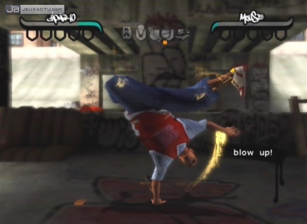 B-Boy, c'est un concept, des graphismes et une bande-son. Mais commençons par le commencement. Les lieux présentés sont relativement pauvres, que ce soit le lieu de résidence du personnage ou les différents lieux de rencontres dédiés aux battles. L'ambiance hip-hop est là mais elle ne suffit pas à combler le vide graphique. La modélisation des personnages est approximative et manque réellement de soin. On a comme l'impression que cette partie du jeu a été mise de côté par les développeurs. En théorie, B-Boy laissait imaginer tout plein de bonnes choses mais en pratique le jeu est très peu étoffé et propose uniquement des affrontements basés sur des mouvements de hip-hop. B-Boy manque de nouveautés et tire trop en longueur. La répétitivité est aussi l'un des gros points noirs du titre, même si les défis changent et évoluent tout comme la musique. Pour les bons points, on peut souligner le gameplay qui demande une vraie implication dans le jeu. Le nombre de mouvements réalisables est important ce qui permet de réaliser de jolis battles. Et le meilleur pour la fin : la bande-son est relativement impressionnante et sur ce coup, on sent bien que rien n'a été laissé au hasard.