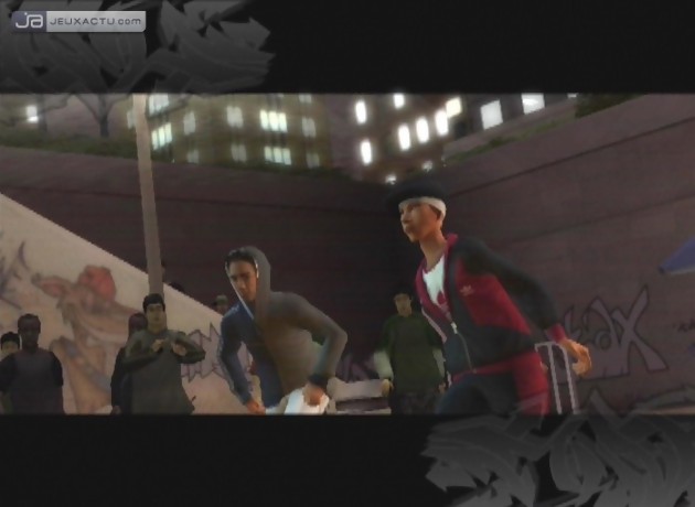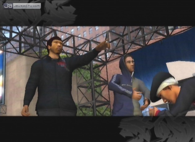 B-Boy, c'est un concept, des graphismes et une bande-son. Mais commençons par le commencement. Les lieux présentés sont relativement pauvres, que ce soit le lieu de résidence du personnage ou les différents lieux de rencontres dédiés aux battles. L'ambiance hip-hop est là mais elle ne suffit pas à combler le vide graphique. La modélisation des personnages est approximative et manque réellement de soin. On a comme l'impression que cette partie du jeu a été mise de côté par les développeurs. En théorie, B-Boy laissait imaginer tout plein de bonnes choses mais en pratique le jeu est très peu étoffé et propose uniquement des affrontements basés sur des mouvements de hip-hop. B-Boy manque de nouveautés et tire trop en longueur. La répétitivité est aussi l'un des gros points noirs du titre, même si les défis changent et évoluent tout comme la musique. Pour les bons points, on peut souligner le gameplay qui demande une vraie implication dans le jeu. Le nombre de mouvements réalisables est important ce qui permet de réaliser de jolis battles. Et le meilleur pour la fin : la bande-son est relativement impressionnante et sur ce coup, on sent bien que rien n'a été laissé au hasard.