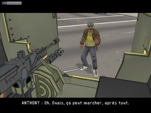 Tout commence par la convergence de nombreuses bonnes idées. Tout d’abord, une formidable idée de scénario. Et si toutes les catastrophes possibles et inimaginables s’abattaient le même jour sur cette bonne ville de Los Angeles ? Tout d’abord une attaque bactériologique avec des terroristes, une secousse sismique, des météorites, un tsunami, une invasion de zombis… Et quelques autres réjouissances, histoire d’avoir une journée bien remplie. Voilà, tout arrivera la même journée. Et pour une telle journée, il faut un héros hors du commun, original. Le choix est fait : ce sera un clochard, noir. C’est vrai que dans une production non-American McGee, on aurait eu droit à l’éternel militaire blanc droit dans ses bottes. Ca nous change un peu. Dans un premier temps, on sent les bonnes intentions de notre chef de projet préféré mais c’est également à double tranchant, comme nous le verrons plus tard. La dernière bonne idée, c’est l’utilisation du cel-shading. Ce procédé apporte un cachet BD à n’importe quel jeu. Comme en BD avec la ligne claire, chaque personnage, véhicule ou bâtiment est entouré d’une ligne foncée pour mettre en valeur chaque élément d’une image. Dans le cas de Bad Day, ce choix est tout bonnement judicieux car les textures ne sont pas des plus détaillées et le joueur a donc l’impression de se retrouver en pleine bande dessinée.