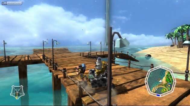 Prônant l'originalité comme cheval de bataille, Banjo-Kazooie : Nuts & Bolts n'en oublie pas pour autant qu'il est issu d'un lignée de titres de pure plate-forme et tente donc de donner aux habitués le minimum syndical dans ce domaine, ce qui n'est, en réalité, pas grand chose. Certes de nombreux défis vous demandent d'aller chercher tel ou tel objet, de vous battre en duel avec un adversaire dans sortes de combats de sumo ou de récolter différents items mais jamais vous n'aurez réellement l'impression d'avancer, de passer un cap vous amenant plus loin, d'explorer tout simplement. Certes Duelville est gigantesque et c'est un plaisir d'y dénicher les coins et les recoins secrets, mais le joueur a plus le sentiment de gagner des nouveaux accès que de les découvrir. Ce revirement ne plaira pas à tout le monde, surtout aux amateurs de la série de Rare qui attendaient plus un Super Mario Galaxy-like qu'un titre puzzle au concept étonnant. Néanmoins et malgré la redondance de certaines épreuves, notamment celles de course pure, on retrouve le côté progression par l'expérience du jeu de plateforme au sein même de la construction des véhicules qui sont en un sens les énigmes à résoudre pour aller de l'avant. Banjo-Kazooie : Nuts & Bolts perd en intensité, en narration, ce qu'il gagne en profondeur de jeu et en simple plaisir empirique. Reste à savoir de quel côté on se trouve.