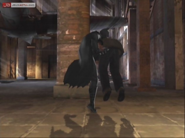 Pour se défouler, le jeu va alors proposer des phases en Batmobile, phases au nombre de… deux seulement. Ici, plus question de finesse et on se retrouve vite face à un mini Burnout 3 (du même éditeur) où l’on doit effectuer un nombre défini de Takedown, agrémenté d’un peu de James Bond (toujours chez le même éditeur) pour les phases de ‘tir’ sur véhicule. Rapides et remplissant leur rôle d’exutoire, ces deux passages sont à l’image du reste du jeu, c'est-à-dire finalement un peu trop facile. Sans se finir en trois heures, Batman Begins ne vous monopolisera pas trop longtemps non plus, et il faut compter entre sept et huit heures de jeu pour venir à bout des quelques rebondissements du titre. Une moyenne finalement correcte pour la catégorie et qui s’avère suffisante pour ne pas tomber dans l’ennui.