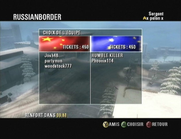 Et là, rien de plus facile. Le changement de personnage est tout aussi intuitif que le gameplay général du jeu. Le bouton Y (Triangle) vous permettra, par simple pression sur celui-ci, de passer d’un avatar à un autre dès lors que vous avez choisi votre soldat. Une petite icône bleue définit vos troupes durant la bataille et lorsque celle-ci devient blanche vous pouvez alors vous réincarner en sniper, sapeur ou soldat d’assaut. L’action se fige pendant quelques secondes le temps que vous preniez possession de votre nouveau combattant. La maniabilité ne variant pas selon votre choix, il est par conséquent plus facile de se repérer dans le feu de l’action et trouver ses repères en moins de deux. Seul peut-être le changement d’armes posera quelques problèmes durant une situation critique car, pour basculer d’un équipement à un autre, il faudra maintenir L (L1) enfoncé et choisir son joujou avec le stick analogique droit. Mais une fois familiarisé avec la prise en main de Battlefield 2 : Modern Combat, le problème ne se pose plus.