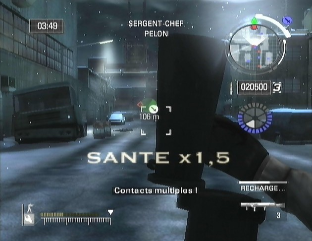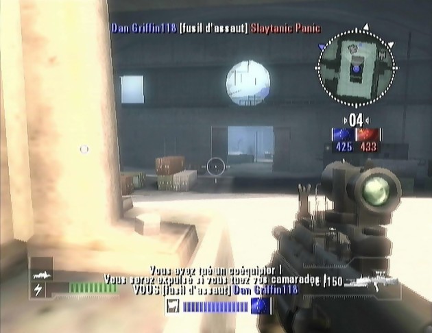 Et là, rien de plus facile. Le changement de personnage est tout aussi intuitif que le gameplay général du jeu. Le bouton Y (Triangle) vous permettra, par simple pression sur celui-ci, de passer d’un avatar à un autre dès lors que vous avez choisi votre soldat. Une petite icône bleue définit vos troupes durant la bataille et lorsque celle-ci devient blanche vous pouvez alors vous réincarner en sniper, sapeur ou soldat d’assaut. L’action se fige pendant quelques secondes le temps que vous preniez possession de votre nouveau combattant. La maniabilité ne variant pas selon votre choix, il est par conséquent plus facile de se repérer dans le feu de l’action et trouver ses repères en moins de deux. Seul peut-être le changement d’armes posera quelques problèmes durant une situation critique car, pour basculer d’un équipement à un autre, il faudra maintenir L (L1) enfoncé et choisir son joujou avec le stick analogique droit. Mais une fois familiarisé avec la prise en main de Battlefield 2 : Modern Combat, le problème ne se pose plus.