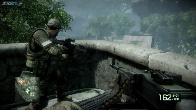 Quatre têtes brûlées sans foi ni loi tentent donc de mettre un terme à une guerre froide qui enflamme jusqu’aux sommets enneigés d’Amérique du sud. Sur leur route, nos héros ne croiseront rien de moins qu’un as de la CIA, un officier cosaque chauve, un mystérieux programme militaire japonais vieux de cinquante ans et pas mal de guérilleros porteurs de Stetson. Du grand n’importe quoi, pour une aventure qui assume bien moins son caractère irrespectueux qu’auparavant. Version ludique des Rois du Désert (ou de son modèle, De l’or pour les braves), la première escapade de la Bad Company flinguait avec allégresse le mythe du super soldat. Tout cela manquait assurément de finesse et de spiritualité, mais le résultat, rigolo et irrévérencieux, n’était pas dépourvu de piquant. Las, les barbouzes sont fatigués ! Non content de flirter bien maladroitement avec une Grande Muette qui ne veut pas de lui, le quatuor a laissé au coffre ses rêves de richesse facile, sa répartie et son sens de l’initiative pour mieux marcher dans les pas de l’intouchable Modern Warfare. Drôle d’idée ! Il y a dix-huit mois, DICE avait bien compris que s’il voulait que son titre survive, il ne fallait pas chercher Infinity Ward sur son terrain, mais lui piquer quelques idées (environnements contemporains, action sauvage) et les accommoder à une sauce inédite (maps ouvertes, destruction massive, second degré). Victimes d’un brutal excès de confiance, les Suédois se sont cette fois sentis capables d’en remontrer à leur concurrent direct et se sont lancés, la fleur au fusil, dans l’action scriptée et les niveaux couloirs, bricolant au passage un scénario plus ridicule que jamais.