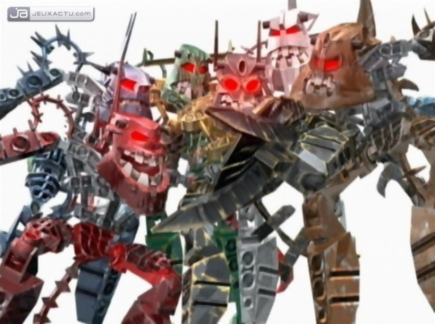 L’univers de Lego n’en finit plus de se décliner à toutes les sauces et dans ce méli-mélo vidéoludique les robots Bionicle connaissent un succès grandissant, du moins dans les rayons des jeux et jouets. Et après une première déclinaison sur les consoles de salon signée Argonaut Games, les briques s’empilent pour la seconde fois sous la houlette de Traveller’s Tales qui a réussi à donner une touche un peu plus personnelle à la trilogie Star Wars avec LEGO Star Wars II : La Trilogie Originale. C’est donc avec un petit peu d’intérêt que l’on attendait au tournant ce Bionicle Heroes, histoire de se divertir quelques heures. Pas besoin de chichis pour mettre en place le scénario de ce titre. Nos robots doivent affronter d’autres méchas belliqueux pour rétablir la paix sur l’île de Voya Hui. « Nos robots ? ». Plutôt que de contrôler un seul et unique personnage, aux fils des 25 missions, vous dirigez une demi-douzaine de Bionicle ayant chacun leurs propres caractéristiques. Vous devrez donc choisir en fonction des séquences quel est le Bionicle adéquat. De cette manière, vous découvrirez de nouvelles zones de jeu en escaladant les rochers, en traversant un fleuve de lave ou en empruntant un passage sous-marin. Mais seul Hewkii vous permettra de déplacer les blocs qui obstruent votre progression. A la manière de LEGO Star Wars II : La Trilogie Originale, ce Toa dispose d’une force psychique pour déplacer les objets à distance et mettre la main sur des pièces de Lego qui vous permettront de débloquer dans une boutique bon nombre de bonus. Dit comme ça, on pourrait croire que le principe de changer de personnages en cours de jeu évite la répétitivité de l’action mais c’est se fourrer le doigt dans l’œil. Le gameplay anéantit totalement cette volonté des développeurs car, outre une facilité de progression déconcertante, les séquences sont d’une monotonie à mourir. C’est simple, dans Bionicle Heroes, on avance, on tire, on avance, on tire ad vitam æternam ! Et le problème, c’est que l’on est grandement aidé dans cette tâche à cause de la visée automatique et des ennemis qui ne font rien pour se protéger. L’autre souci, c’est que dans ce florilège de balles et d’explosions, la caméra nous empêche de bien comprendre l’action du fait d’être trop collée à l’épaule du personnage. Cette bouillie de défauts ne nous permet pas d’apprécier le jeu qui perd rapidement de son intérêt au bout de quelques minutes et c’est d’autant plus dommage que la durée de vie est correcte. Enfin, graphiquement si le jeu reste tout juste agréable à l’œil sur current gen’, la version Xbox 360 est loin mais alors très loin d’être digne de l’ère next gen’.