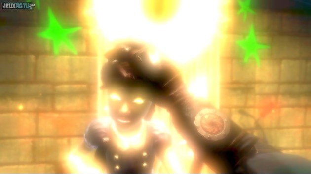 Plus que jamais, BioShock 2 vous place face à votre conscience et fait intervenir régulièrement votre libre arbitre. On retrouve ainsi le dilemme consistant à tuer les petites soeurs afin de leur prélever un maximum d'Adam, ou bien à les sauver en espérant être récompensé de notre bonté un peu plus tard. A plusieurs reprises le jeu nous permet également de tuer ou d'épargner des personnages clés, sans que les conséquences de ces actes ne nous soient annoncées. Par ailleurs, du fait de sa nature de Protecteur, la collaboration entre le héros et les petites soeurs se fait plus fine qu'auparavant. Avant de les désenvoûter ou de les récolter, notre scaphandrier peut les prendre sur ses épaules pour un partenariat très fructueux. La petite fille nous indique alors la position de cadavres encore remplis d'Adam, qu'elle s'empressera de ponctionner à votre profit commun. Mais cette opération attire irrémédiablement tous les tarés du coin, manifestement alléchés par l'odeur de la drogue. Durant une ou deux minutes, il faut donc défendre la position face à un déferlement d'ennemis assez intense. Bien qu'un peu trop répétitives à la longues, les séquences de ce type constituent une nouveauté louable à plusieurs titres. Tout d'abord, elles intensifient nettement l'action et devraient donc répondre aux attentes de ceux qui trouvaient les combats du premier épisode un peu trop mous. Mais surtout, elles sont l'occasion de mettre à profit l'ensemble des plasmides (les sorts dans l'univers de BioShock) et des armes de défense. C'est un véritable régal de parsemer le terrain de rivets piégés et de mines de proximité tout en se préparant à hypnotiser le premier Chrosôme venu afin qu'il s'en prenne à ses congénères... que l'on ne manquera pas de congeler, enflammer ou électrifier selon ses préférences. L'usage des plasmides a été revu et corrigé puisque leur montée en puissance sur trois niveaux s'accompagne d'une capacité de charge qui décuple leur puissance. A terme, l'incinération se transforme par exemple en véritable lance-flammes. L'évolution la plus intéressante concerne certainement celle de la nuée d'insectes. Dotés d'une capacité de recherche améliorée, les parasites se dirigent seuls vers la victime la plus proche, fut-elle hors de votre vue. Et une fois le troisième niveau atteint, ils infestent carrément les cadavres qui deviennent immédiatement de véritables pièges. Chaque ennemi qui s'en approche de trop près se voit alors aussitôt attaqué par un nouvel essaim.