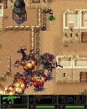 En route pour l’Iran donc pour libérer les otages et mettre le feu aux puits de pétrole ! La première mission s’effectue en hélicoptère et les objectifs sont relativement basiques. Objectif primaire : supprimer les armes lourdes, objectif secondaire : éliminer toute présence hostile. Vu du dessus, l’hélicoptère survole automatiquement à une allure d’escargot une carte truffée d’ennemis divers (lance roquettes, infanteries, blindés…) qu’il va falloir abattre. Le concept est simple, le joueur ne dirige pas l’hélicoptère qui ne fait que tourner en rond autour de la carte à vitesse constante mais ne fait que viser les adversaires. Nous sommes dons dans le cadre du jeu de tir pur et dur, malheureusement, toutes ces missions en hélicoptère ne sont guère difficiles et se passent toutes très facilement dès la première tentative, ce qui n’est guère exaltant. Les graphismes 2D sont joliment colorés et tout à fait plaisants et si le jeu ne possède pas d’autre musique que celle de l’écran d’accueil et celui du décompte des points, les bruitages (explosions, tirs) sont convaincants.