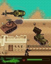 En route pour l’Iran donc pour libérer les otages et mettre le feu aux puits de pétrole ! La première mission s’effectue en hélicoptère et les objectifs sont relativement basiques. Objectif primaire : supprimer les armes lourdes, objectif secondaire : éliminer toute présence hostile. Vu du dessus, l’hélicoptère survole automatiquement à une allure d’escargot une carte truffée d’ennemis divers (lance roquettes, infanteries, blindés…) qu’il va falloir abattre. Le concept est simple, le joueur ne dirige pas l’hélicoptère qui ne fait que tourner en rond autour de la carte à vitesse constante mais ne fait que viser les adversaires. Nous sommes dons dans le cadre du jeu de tir pur et dur, malheureusement, toutes ces missions en hélicoptère ne sont guère difficiles et se passent toutes très facilement dès la première tentative, ce qui n’est guère exaltant. Les graphismes 2D sont joliment colorés et tout à fait plaisants et si le jeu ne possède pas d’autre musique que celle de l’écran d’accueil et celui du décompte des points, les bruitages (explosions, tirs) sont convaincants.