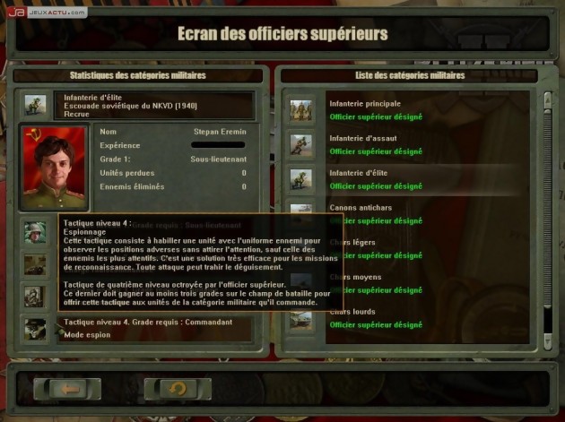 Blitzkrieg 2 intègre également un système d'expérience afin de récompenser vos faits d'armes. La logique est on ne peut plus simple, il faut anéantir le maximum de troupes adverses et minimiser ses pertes pour grappiller le plus d'expériences possibles. Ainsi, vous pourrez éventuellement monter en grade et ainsi affecter un officier supérieur à une unité spécifique afin qu'il transmette plus facilement vos directives. Ce dernier n'est pas présent physiquement sur le front mais il pourra également prendre du galon et surtout faire bénéficier de son expérience tactique à ses hommes. Ainsi, leur habilité ira croissant et ils auront accès à de nouvelles compétences au fur à mesure des promotions de leur officier supérieur. Les différentes missions gagneraient à être légèrement plus variées mais on soulignera tout de même que les développeurs ont fait un effort dans ce sens. Elles consistent généralement à aller déloger l'ennemi d'une place fortifiée ou au contraire à garder le contrôle d'une zone stratégique comme un pont pour contenir son avancée ou encore à protéger un convoi. L'action est dynamique et autant dire que vous n'aurez pas le temps de vous ennuyer. L'intelligence artificielle est des plus correctes et changera du tout au tout selon la difficulté choisie au préalable. Toutefois, il faut reconnaître que si le titre est nettement plus exhaustif que pouvait l'être son prédécesseur, il se veut également plus accessible pour le commun des mortels. On lui reprochera toutefois un léger souci de pathfinding avec notamment des unités d'infanterie mobile qui se coincent au détour d'une ruelle ou qui détruisent leur propre défense en roulant dessus. Blitzkrieg 2 offre des environnements presque entièrement destructibles et on pourra constater assez souvent les tanks se frayaient un passage à travers une forêt et leur obus pourront réduire en cendres n'importe quel bâtiment. Et si malgré quelques problèmes de finitions (légers bugs d'affichage voire même des retours inopinés sous windows) ont fait partie des aléas durant notre test, on reconnaît que la réalisation est plutôt soignée, arborant un petit air old school loin d'être désagréable. Bref, Blitzkrieg 2 correspondra entièrement aux attentes des amateurs de jeux de stratégie de par son exhaustivité et sa durée de vie. Les gars, la relève est assurée !