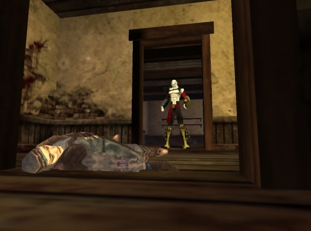 Reste un point non négligeable, qui fait la solidité d’un jeu d’aventure: la maniabilité. Si elle est désastreuse, la durée de vie en prend un coup et par conséquent le jeu aussi. Heureusement, Blood Omen 2 tire son épingle du jeu et en ressort avec pratiquement aucun défaut. Evidemment, Kain a tout l’attirail du parfait héros de jeu d’aventure : il saute, il coure, il frappe, il actionne, il s’accroche, il se protège. Mais qui plus est, il possède ses propres caractéristiques de Vampire à savoir qu’il peut boire du sang, planer dans les airs, utiliser des dons obscurs. Pourtant, c’est l’un des seuls héros qui ne peut nager puisque les Vampires craignent l’eau. Pour se défendre des Séraphéens ou pour simplement se nourrir de ces pauvres villageois, Kain a plus d’un tour dans son sac. Tout d’abord, sa morphologie lui permet d’asséner des coups mortels à l’aide de ses griffes. Il peut aussi utiliser les armes de ses ennemis qui malheureusement ne sont pas indestructibles. Et chaque personne tuée représente une dose plus ou moins importante de sang. Ce sang, c’est votre énergie, votre vie. Il s’écoule petit à petit et lorsque vous êtes sec comme un pruneau, la mort vient vous chercher. Enfin, Kain acquiert au fil du jeu des dons obscurs. Ces derniers peuvent être à but défensif, offensif ou stratégique. Par exemple, la Brume vous permet de vous dissimuler afin de tuer d’un coup un ennemi, la Télékinésie vous octroie la possibilité de contrôler un villageois pendant un certain temps. Un bien bel éventail de possibilités qui donne un peu plus de stratégie et d’animation aux combats. Seul petit point regrettable dans ce petit paradis de maniabilité, c’est que le stick analogique droit, contrôlant la caméra, est un peu trop sensible. On se retrouve aisément à 90° alors qu’on voulait tourner la caméra d’à peine quelques degrés. Et cela peut coûter quelques coupures sur la belle peau de Kain à cause d’un ennemi bien planqué.