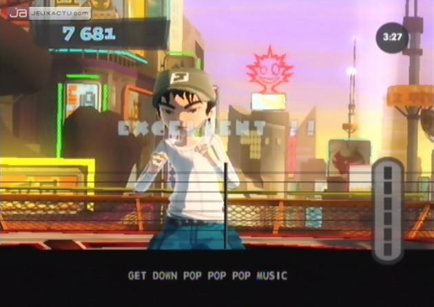 C’est bien connu, il est préférable d’exceller dans une seule et unique discipline que d’être moyen partout. A trop vouloir bouffer à tous les râteliers, Boogie s’est perdu en cours de route, à commencer par son mode "Danse" particulièrement foireux ! A l’aide de la Wiimote et du Nunchuk, l’objectif est de remuer les mains en rythme. Pour nous aider à garder le tempo, un métronome s’affiche à l’écran et nous indique les mouvements à réaliser au bon moment. Pour ceux qui préfèrent faire travailler leur oreille musicale, le petit haut-parleur de la Wiimote se charge aussi de conserver la bonne cadence. C’est en substance ce qu’on imagine une fois le tutorial bouclé, mais une fois l’aventure lancé, rien ne semble concorder avec un quelconque jeu de danse. Remuer sa Wiimote dans quatre directions différentes (haut, bas, droite et gauche) tout en suivant la cadence imposé par le métronome, voilà en gros à quoi se résume le concept du jeu de danse de Boogie. Amusant les deux premières minutes, juste le temps de prendre le coup de main, ce système se révèle être la plus mauvaise idée trouvée depuis ces dix dernières années en matière de jeu musical. Quelque soit la chanson choisie, le joueur est limité à ces mêmes manœuvres, la cadence variant juste d’un titre à un autre. Une incompréhension qui vire aussitôt à l’aberration quand on se rend compte à quoi sert le Nunchuk. En reliant le module à la Wiimote et en appuyant sur le bouton Z, il est possible de ralentir le temps et donc la cadence pour que son personnage prenne la pose, comme il est écrit à l’écran. Quant à la cible qui s’affiche, le but est de l’atteindre toujours à l’aide des fonctionnalités gyroscopiques du Nunchuk. Aucun intérêt. Pour nous faire croire à une certaine variété, il est possible de changer de style de danse en pleine chorégraphie. Une simple pression sur le bouton A suffit pour passer de la danse disco au break hip-hop. Là encore, l’intérêt reste misérable.