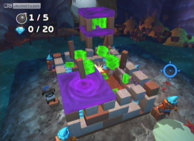 Le concept, à proprement parler, n'enregistre pas d'évolutions, mais les différents éléments qui le composent, si. Boom Blox : Smash Party intègre en effet une série de nouveautés qui raviront les fans du premier opus et les amateurs de challenge. Par exemple, le titre est désormais composé de niveaux aquatiques et spatiaux, nous obligeant à composer avec une physique propre et une inertie totalement différente. Autant dire que le plaisir que l'on tire du jeu est largement renouvelé, d'autant qu'à cela s'ajoute de nouveaux blocs, de nouvelles balles ou encore différentes manières de lancer. Une fois détruit, le Bloc Virus contamine par exemple les cubes adjacents, tandis que la Balle Virus permet d'activer ces mêmes blocs pour répandre une épidémie qui ébranlera la stabilité des différents édifices. Les Boom Bux permettent de leur côté de récolter des médailles nécessaires à l'acquisition de levels inédits, ou de différents composants nécessaires à leur élaboration. En plus de 400 tableaux répartis sur les différents modes de jeu, il est toujours possible de faire un petit tour dans l'éditeur de niveaux. La grosse nouveauté étant qu'il est désormais possible de se les échanger en ligne. Boom Blox : Smash Party dispose d'énormément d'atouts pour séduire tous les publics. Fun, instantané, diablement accrocheur, il propose en plus un intérêt à double détente qui permettra aux joueurs plus casual de grignoter le jeu à petite dose, tandis que les acharnés tenteront de faire péter les scores en décrochant systématiquement une médaille d'or à l'issu d'une partie. Cette volonté d'en offrir à tous se retrouve d'ailleurs dans les différents modes multijoueurs qui offrent une panoplie de variantes particulièrement appréciables. Versus, coop' à deux ou bien à quatre, Boom Blox : Smash Party n'est, en plus, pas du style à exiger plusieurs Wiimote pour se laisser savourer à plusieurs, nombre de mini-jeux étant jouables avec une seule télécommande que l'on doit se faire passer tour à tour. Bref, si l'on excepte un design singulier qui ne plaira pas à tout le monde, l'absence de jeu en ligne, et quelques faiblesses techniques (comme lorsque les nombreuses réactions en chaîne occasionnent quelques ralentissements), on peut dire que Electronic Arts est l'auteur d'une très jolie réussite qui est en mesure de réconcilier toute la famille autour de la Wii.
